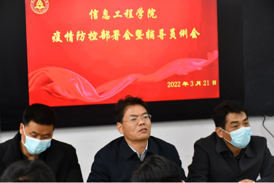 3月21日中午,在公司6143教室,公司召开疫情防控部署会暨辅导员例会,对疫情防控工作进行再部署、再落实。公司党总支书记李强、经理黄宇达、副经理楚书来、学管办主任王文立,各班辅导员及各班班长、团支书参加会议,会议由楚书来主持。