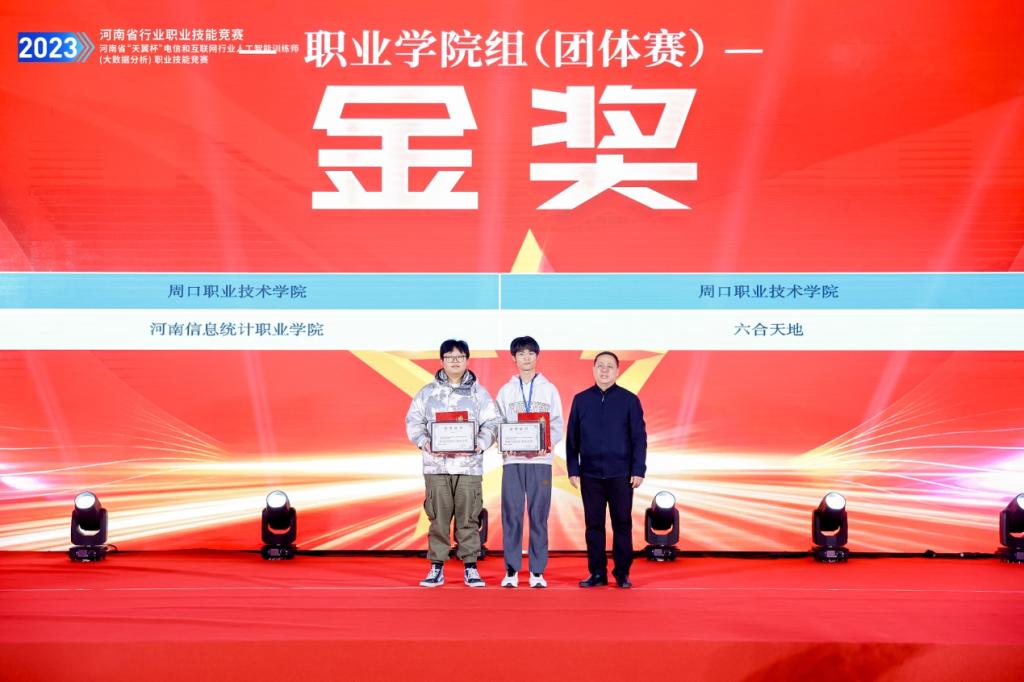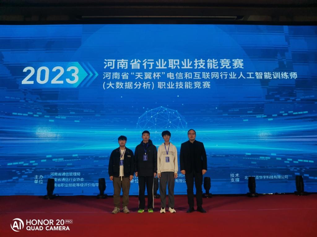 11月25日,2023年河南省行业职业技能竞赛—河南省“天翼杯”电信和互联网行业人工智能训练师(大数据分析)职业技能竞赛在郑州圆满落幕。公司VSport楚书来、冯腾霄两位老师指导,孙梦杰、李豪宇、李金普三名同学组队参赛,比赛中同学们沉重稳重,发挥出应用水平,最后经过三个小时的多轮比拼,以637分的成绩稳居榜首,取得职教组金奖,这也是公司在该赛项上的最好成绩。