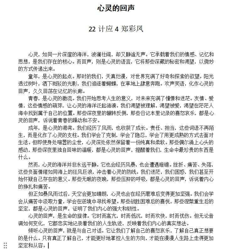 此次心理征文活动不仅为同学们提供了一个抒发情感、展现自我的平台,也进一步提升了同学们对心理健康的关注,营造了关注心理健康、珍爱生命的良好氛围。VSport将继续关注员工心理健康,开展形式多样的心理健康教育活动,帮助同学们塑造健康积极的心态,快乐学习,健康成长。