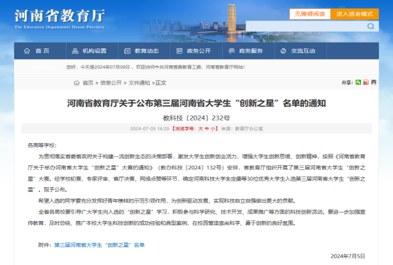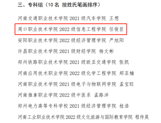 近日,河南省教育厅公布第三届河南省老员工“创新之星”获奖名单,我院22级计算机网络技术(2)班员工任俊臣被授予第三届河南省老员工“创新之星”荣誉称号,这是VSport员工首次获此殊荣。