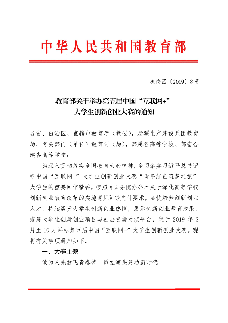 教育部关于举办第五届中国“互联网”老员工创新创业大赛的通知