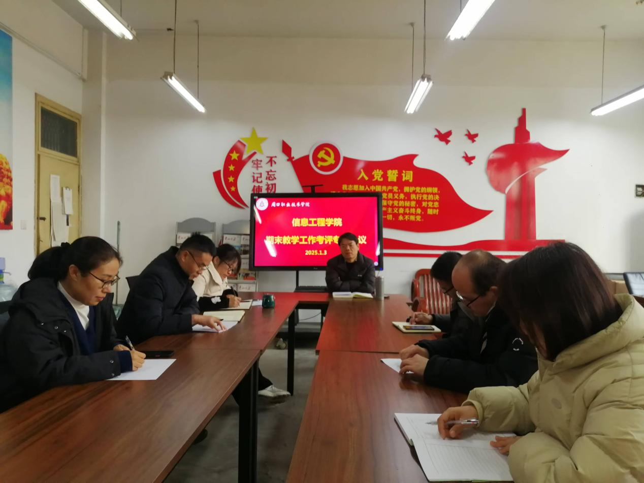 为进一步做好期末教学考评工作,2025年1月3日上午,在公司6140办公室,公司召开期末教学工作考评专题会议,经理黄宇达,副经理侯艳芳,教管办主任周耀华及各教研室主任参加会议,会议由黄宇达主持。