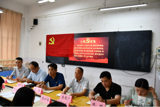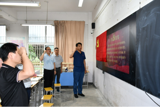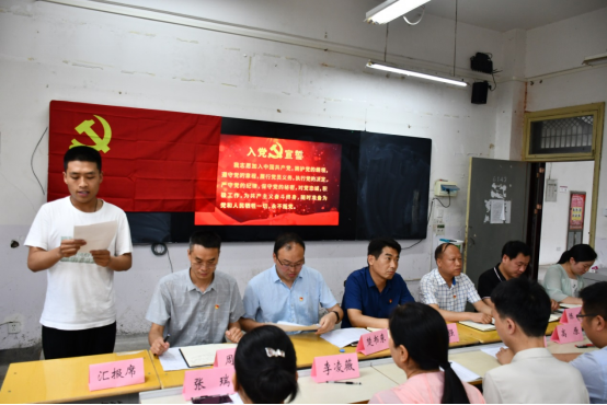完成接收议程之后,由党总支书记李强领誓,全体党员面向党旗,重温了入党誓词。