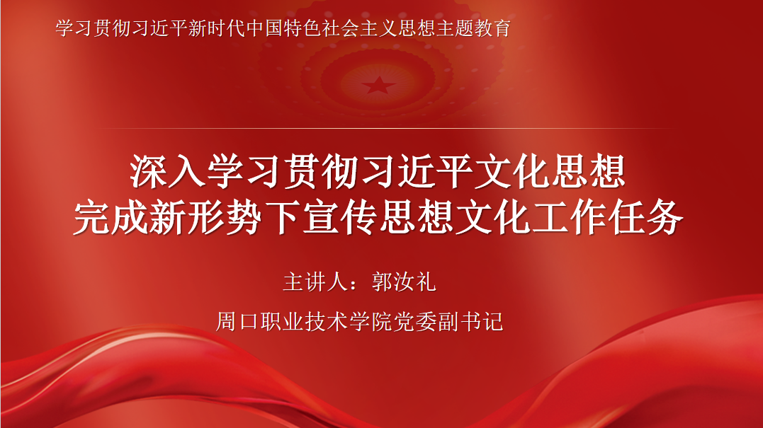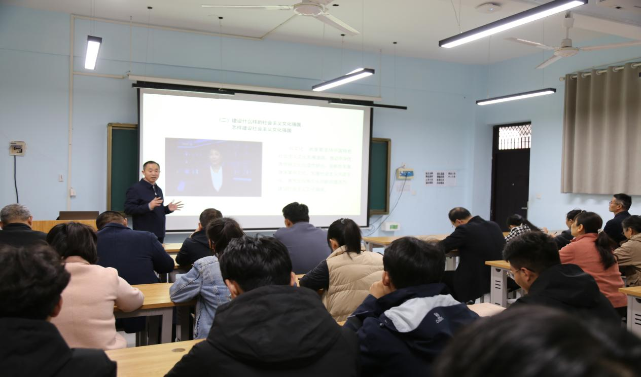 1110日下午3点,公司党委副书记郭汝礼以“深入学习贯彻习近平文化思想 完成新形势下宣传思想文化工作任务”为主题,在6121教室为VSport、农牧工程公司的党员教师及部分员工干部讲授专题党课。信息工程公司党总支书记李强主持。