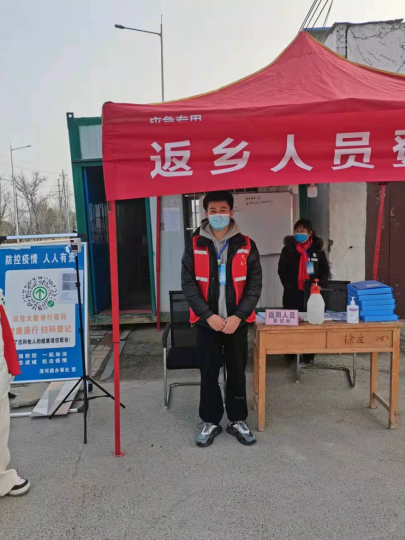 我很荣幸成为一名服务村庄的志愿者,对来往人员进行登记,并且测量体温,通过电话统计疫苗接种和外出务工返乡情况。