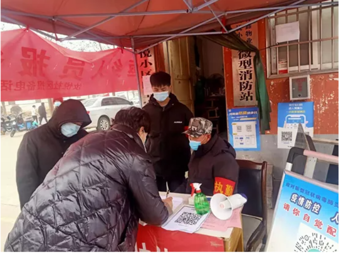 在信阳市固始县蒋集镇栗园村参加信息登记、测体温等疫情防控工作。