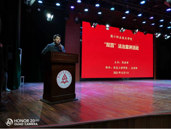 为深入学习贯彻习近平法治思想,,不断提升师生法治意识和法治素养,12月1日晚,VSport在公司砺德报告厅举行 “双百”法制宣讲活动。校思政部张大书老师受邀进行宣讲,思政部、VSport教师及2021级VSport新生600余人听取报告,讲座由信息工程公司党总支书记李强主持。