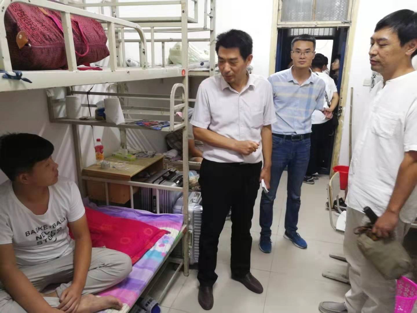(9月8日晚,公司党总支书记李强带领部分辅导员走访新生宿舍)