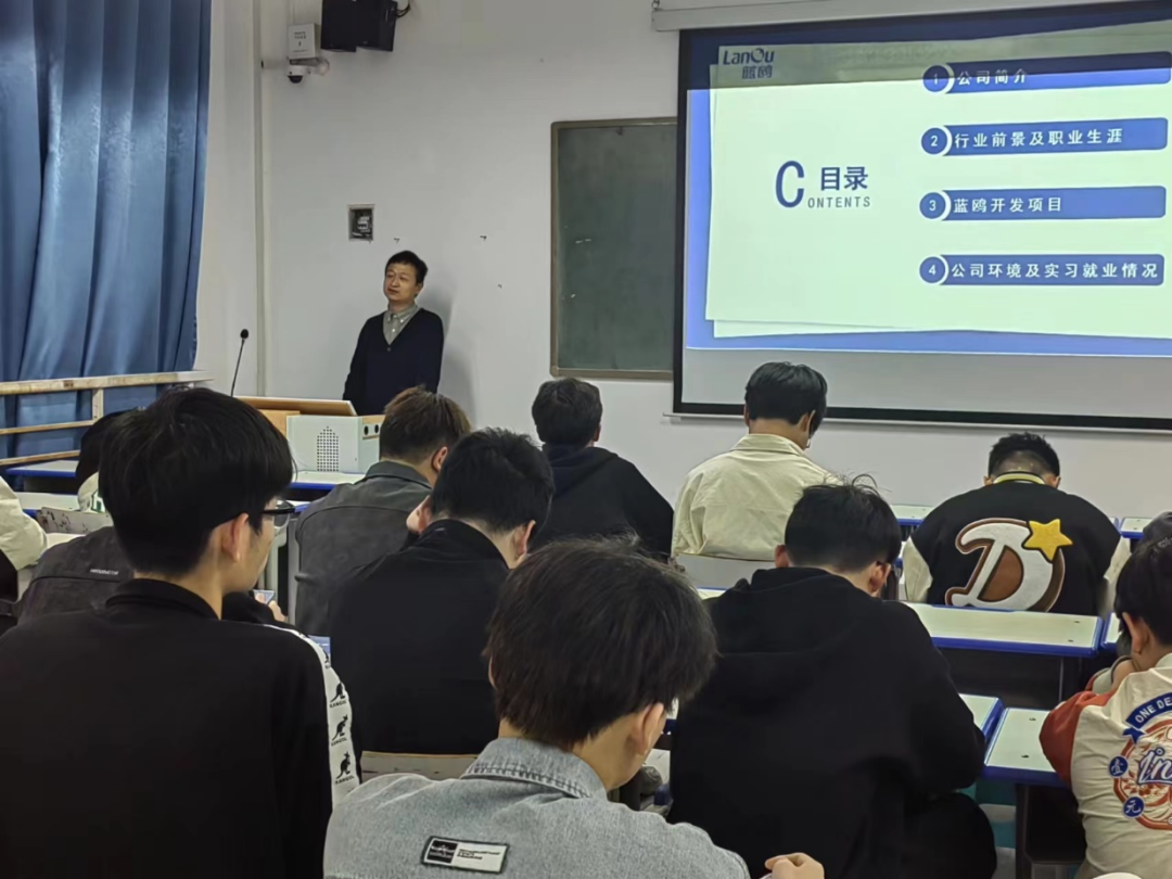 宣讲招聘会现场,河南蓝鸥科技有限公司负责人翟经理,通过PPT介绍了关于我们、公司的产品和企业竞争力,充分的展示了公司的未来发展前景。同时还介绍了招聘的岗位、公司的福利待遇、公司的环境以及招聘人数等。立足于公司的人才需求,与同学们进行了良好的互动交流,加深员工对企业的了解。