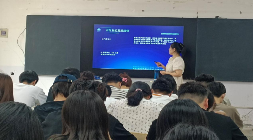 本次招聘宣讲负责人通过国家战略、法律、行政法规等方面比较分析就业形势,全面介绍了公司的发展情况、企业文化、招聘岗位、薪资待遇和晋升情况,主要介绍了每个岗位名称的工作任务,对于IT行业人才能力的需求,需要具备态势感知能力、内网安全等方面需求进行仔细地讲解。宣讲会上,同学们纷纷与企业沟通交流,了解岗位要求及发展前景,主讲人耐心解答了公司员工的相关问题,并提出了很多具有针对性地建议。