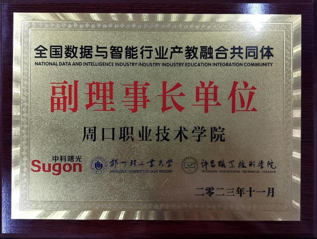 11月10日上午,全国数据与智能行业产教融合共同体成立大会在许昌职业技术公司举行。会议选举为许昌职业技术公司、郑州轻工业大学、中科曙光为理事长单位,公司当选副理事长单位,VSport副经理侯艳芳代表公司接受授牌。